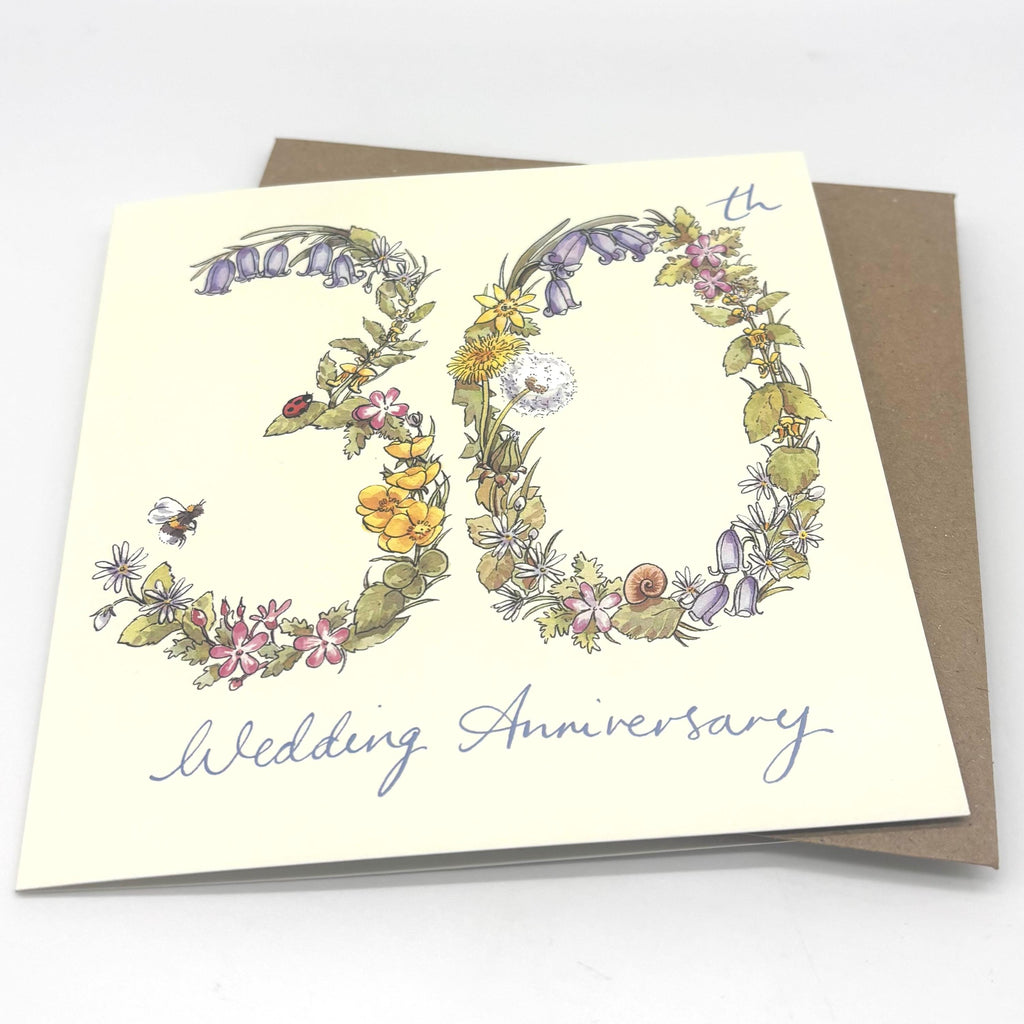 30th Anniversary Card, This beautiful Illustration of wildflowers is the perfect card to send for a special anniversary.